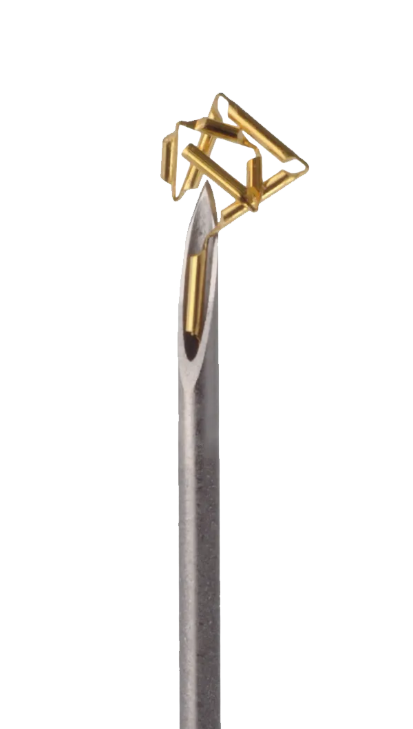 When pushed out of the EUS Needle during implantation, the marker will collapse and fold to different shapes, anchoring immediately in the tissue. The marker can be visualized under ultrasound, magnetic resonance (MRI), computed tomography (CT), fluoroscopy or 2D X-rays at the planning stage and daily during radiotherapy.